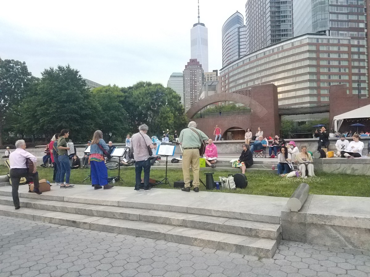 I’m going to miss the circles after next week. This year we became friendly with Frances, the young woman from the Battery Park City Authority who manages events. She’ll be back next year, I asked. One change I’d like to suggest, the musicians that play with Terre should be known as The Pirates. Are you too young to remember the comic, “Terry and the Pirates?” I never read it, but I’ve always made the association.