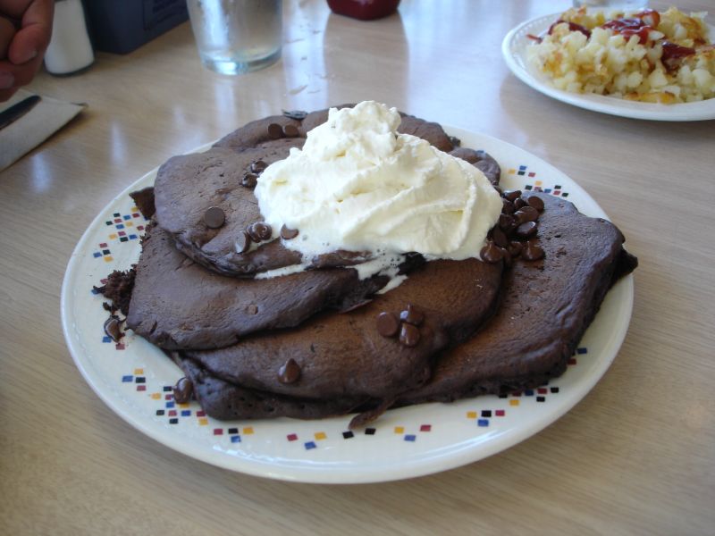 I did not take a Donut Walk™ yesterday; I took an IHOP Chocolate Chip Pancake™ walk instead. I sign up for restaurants that give birthday rewards, and this is the week I collect. The pancakes have a lot more calories than a glazed donut but it’s also a further walk, 4.6 miles round trip. It’s right near the Stop & Shop I frequent. I usually take a circular path to Stop & Shop but yesterday I came home the way I went as there was a threat of rain. I used to think it such a long walk, now I’ve done it so often that it becomes a series of short walks between landmarks. That’s all in my head but it makes a real difference in my perceptions, which is what matters. Chocolate chip pancakes are one of the seven wonders of the world and seven pillars of wisdom. I do not use the “pancake syrup”, it’s not maple, that IHOP gives you on chocolate chips, just butter and whipped cream. I do not skimp on the decadence. I used to get them often, at least once a month. I still love IHOP. All that’s changed is my friends and the way I live my life. It’s hard to write about anything else on a day I had chocolate chip pancakes. They were both my dinner and dessert. I supplemented it with reheated mac & cheese when I got home. I can hear some of my friends groaning and making clogged artery jokes. Puritanism is the fear that somebody else is happy.