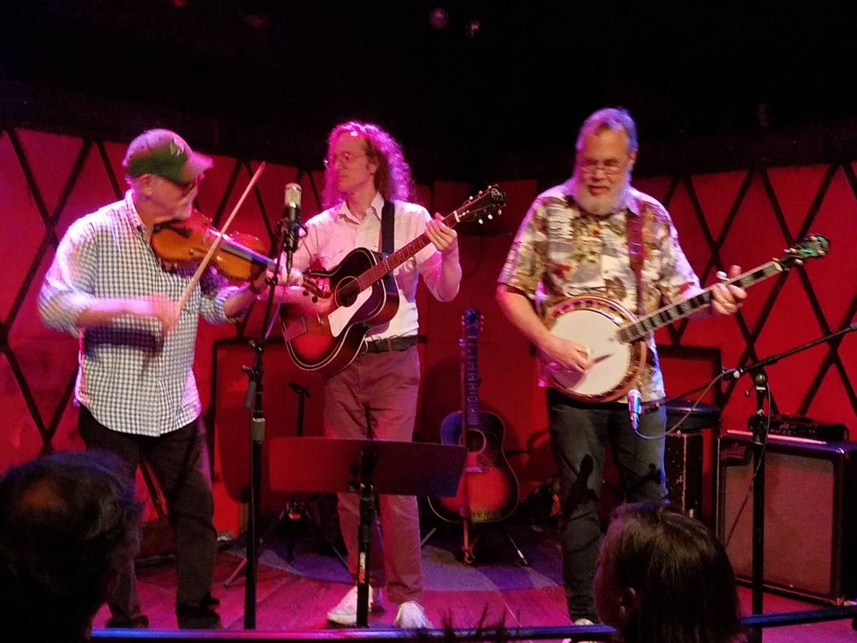 I loved everything about the show, Bruce, Michael, and Tony are all virtuosi on their instruments, fiddle, guitar, and banjo, respectively. I love the kinds of music they play. It might seem odd, but it appeals to the Bach side of my brain. The tunes are complex, and you get rewarded by listening to what each instrument is playing individually. Each instrument gets its own line which dance around each other. There’s so much there there. Tony doesn’t sing but Michael and Bruce do. Michael’s voice has the reedy timbre I associate with bluegrass. Bruce’s is clearer. They go well together; they even did an a capella duet.
