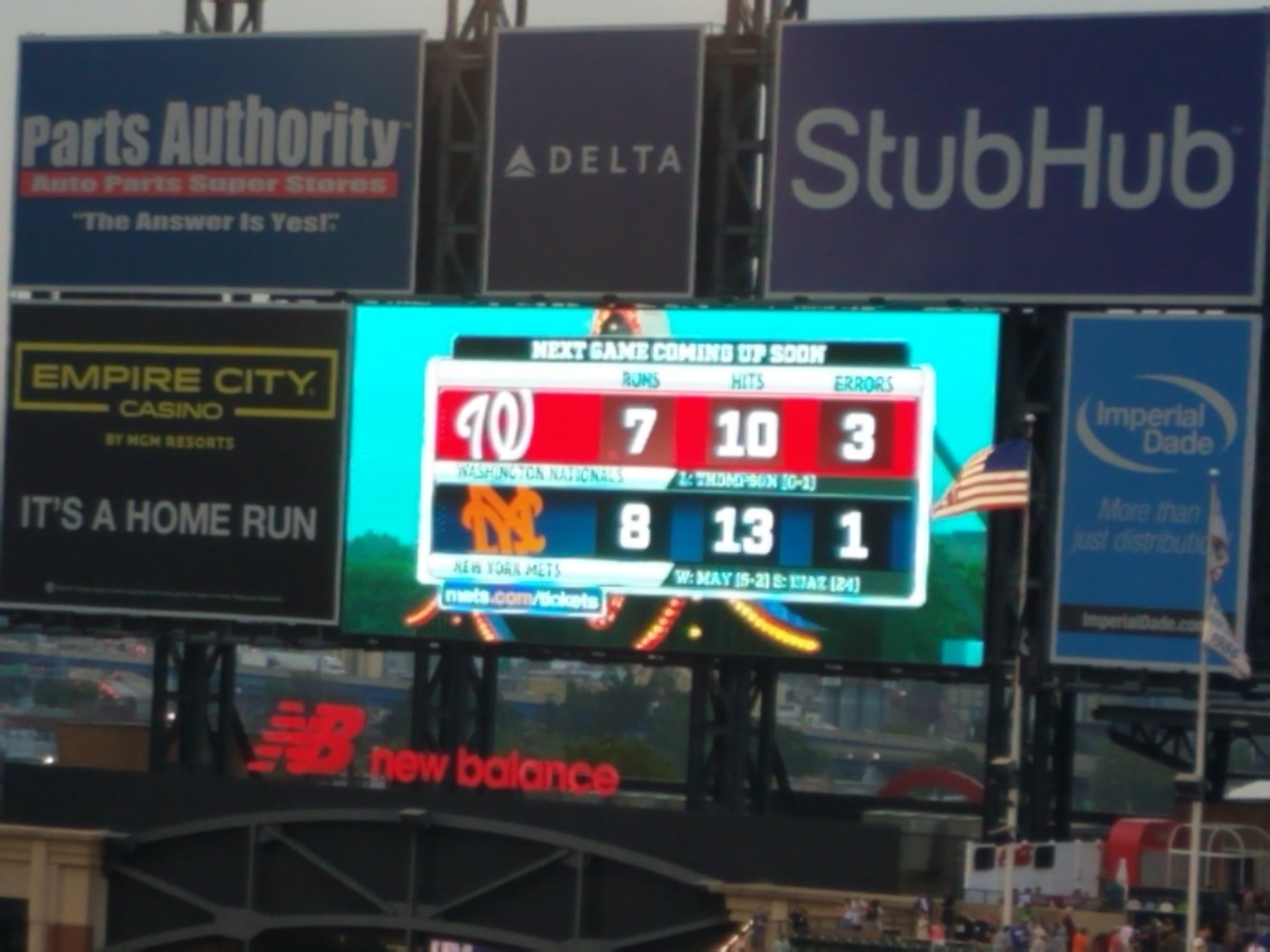 I’m an idiot and left home a little later than I planned and then took the D train an extra stop and had to wait for the next uptown train to take me the 7 train. Because of that I missed the rest of the top of the 2nd and the entire bottom. When I arrived, the Mets were losing 4-1. That doesn’t sound hopeful but that’s neglecting the most important factor, I was at the game. The Mets battled all game and took the lead 8-7 in the bottom of the 8th. Diaz closed at the 9th for the save and a win by the Mets. Woo-hoo! It wasn’t just a win but a great game. The Mets should really pay me to go to game. I’d do it for major league minimum salary and of course tickets to the game. If they were smart, they’d give me a luxury box, complete with catering. I was going to say they should provide me with a limo to the games but that’s not environmentally friendly. Making the major league minimum I could afford and apartment near 42nd Street and could take the 7 train to games. That’s what John Olerud did when he was on the Mets. I think Keith Hernandez did that too.