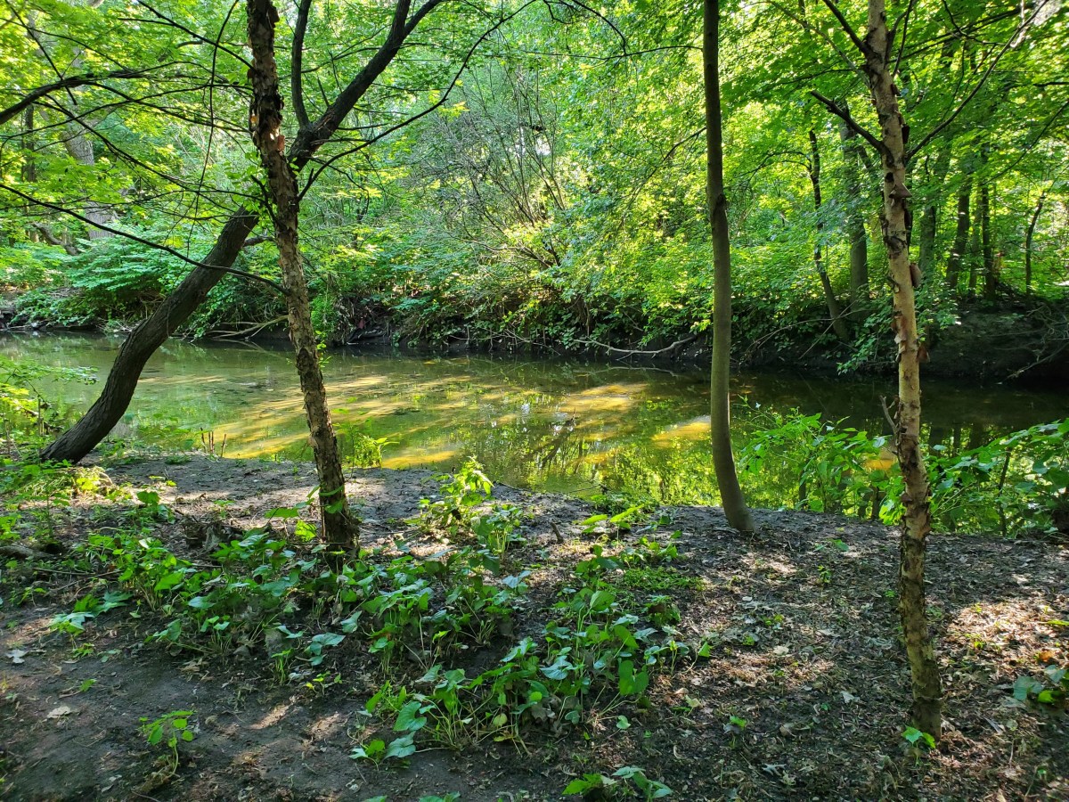 It was a beautiful day, yet I had trouble getting myself outside. I had just given up on going out when I pulled myself together. My psychiatrist said that when I don’t want to go out is the most important time to do it. So, I did, my first thought was to take my power walk circuit of the reservoir. I walked a block in that direction and changed my mind. What I really needed was communing with nature, so I turned around and walked to the Bronx River Forest. Isn’t that a great name for a spot in New York City. It’s not a big park, you are never far from civilization but in it’s bounds it’s wild. This is not a well-manicured urban park, it’s a piece of wilderness with dryad loveliness. It is in a flood plain, there’s a reason it’s named for the Bronx river, and there were temporary ponds on both sides of the paved walk. I thought that would preclude me going on my favorite dirt path along the river and when I looked upstream, I saw the path blocked by water. Then I looked downstream, and it looked clear, so I braved it. I had never walked this way so that was a bonus. I did finally reach an impasse and had to backtrack, but I spent time alone with my thoughts, trees, and running water, exactly what I needed.