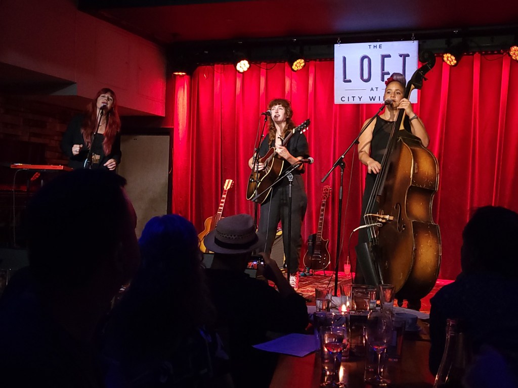Last night was special because I saw The Rainbow Girls for only the third time and the first time indoors. If you listen to my radio show Gord’s Gold, you’ll know that they are one of my favorite bands. They live in the wilds of Northern California and only rarely make their way to the Big Apple. If you are a New York Area presenter and you love me, and you want to put on one of the best shows you ever hosted, book them. I’ll be your best friend. That does not mean that I’m City Winery’s best friend. The offer is only open to people who love me.