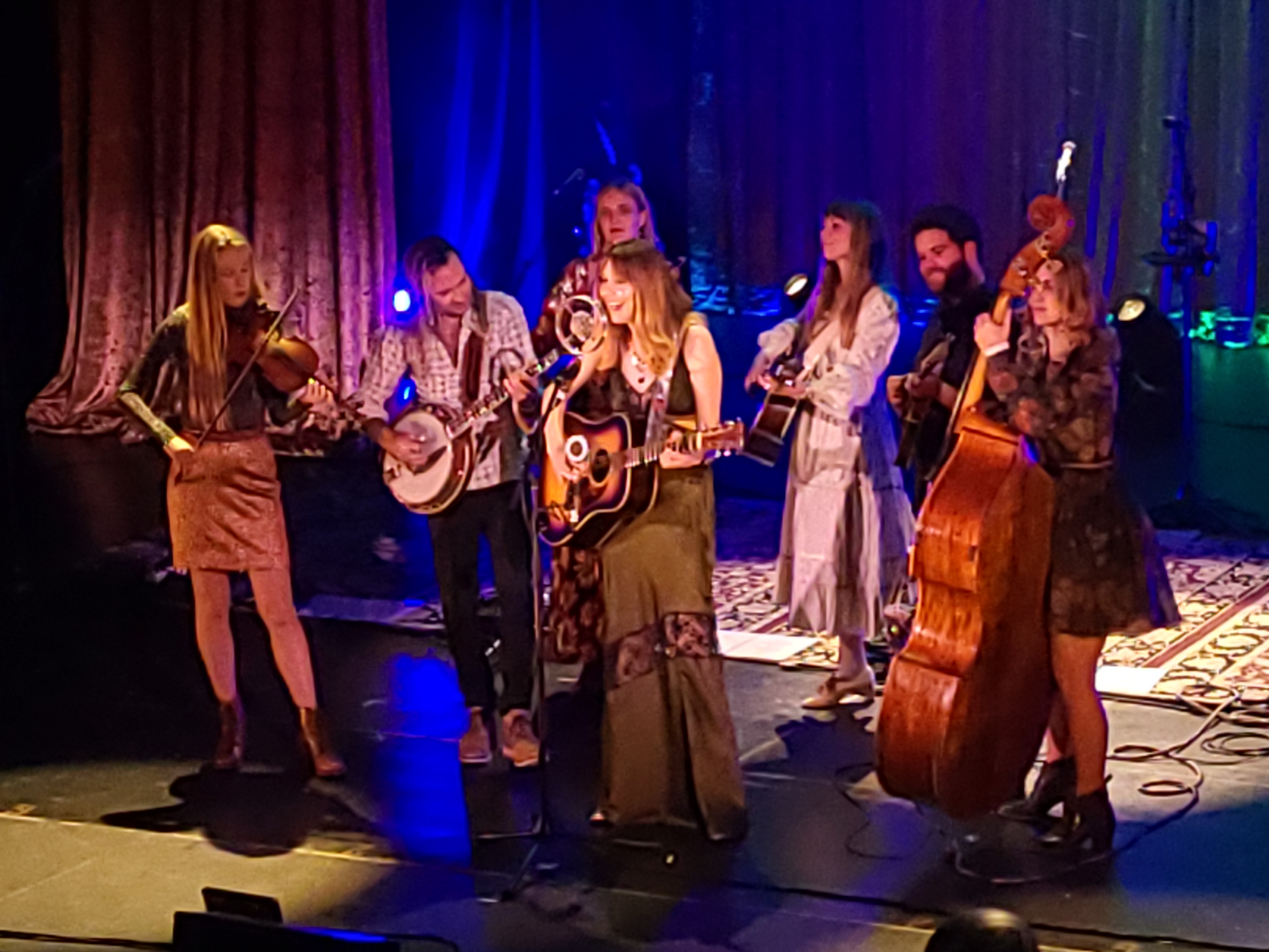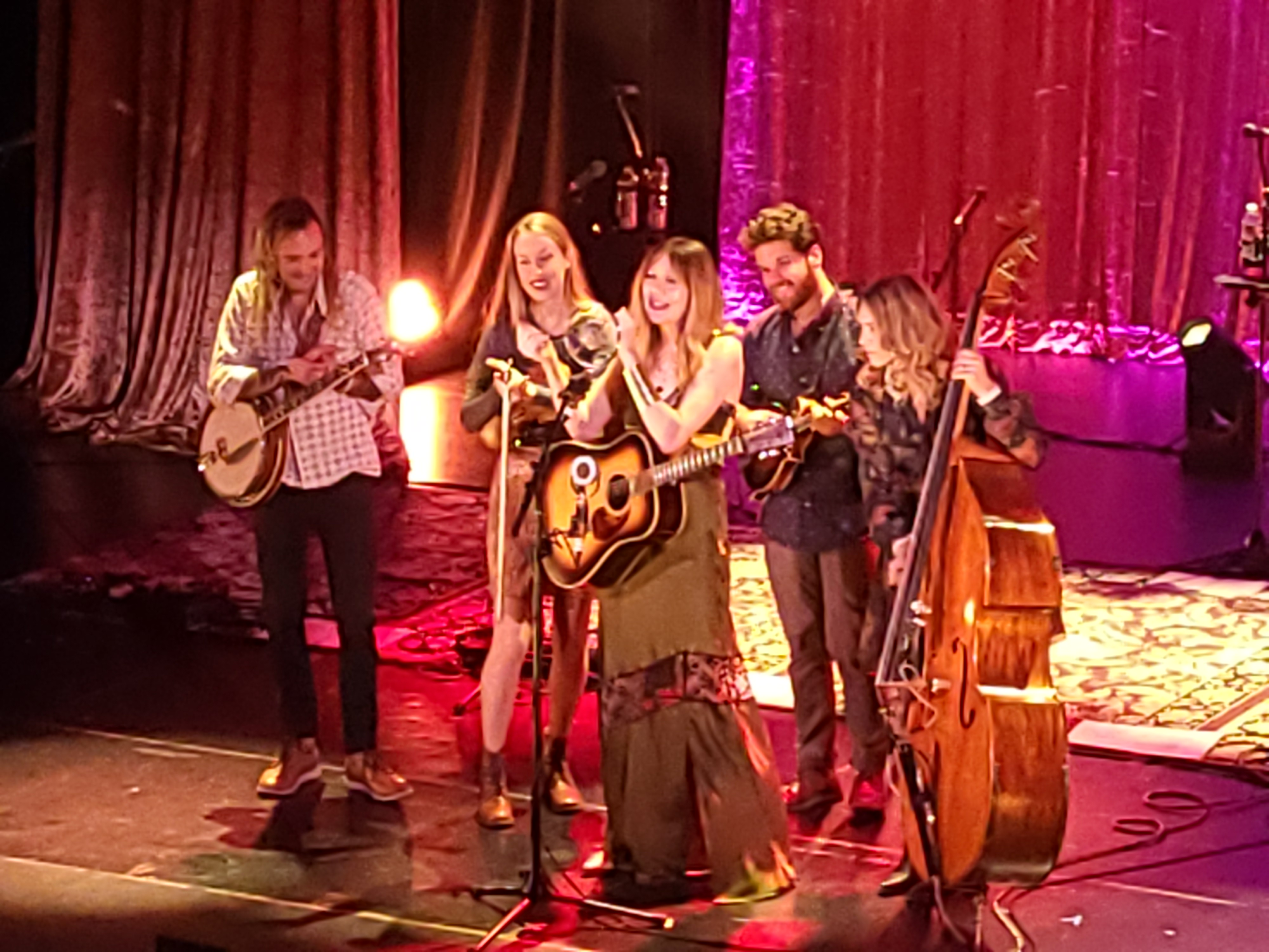 I love Molly Tuttle and have often played her on my show, but somehow had never seen her live. Based on her records I expected greatness, what I got was transcendental greatness. This is in my pantheon. It brought me out the nightmare of life made up of unimportant tasks and tedious useless little habits, to see life as it really is, and to rejoice in its exquisite wonderfulness. Thanks for the words James Branch Cabell. This was not intellectual appreciation, this was not pure emotion that bypasses the conscious mind and goes straight to our emotions, it was a fusion of both. Every beat was perfect. Her band is perfect. I doubt she remembers me, but I know fiddler Bronwyn Keith-Hynes from her days with the band Mile 12. If the devil was in the audience, he’d have had to give her a golden fiddle. Banjoist (does anyone else say ban-joist to themselves?) Kyle Tuttle’s fingers moved at relativistic speed. I thought that she was so lucky too have such a talented brother to play in her band, she wasn’t. They aren’t related. The other half of the short-sustain section of the band was the magician of the mandolin Dominick Lesley. Molly stole him from the band Hawktail, where he played with Brittany Haas. I told you she’d be back. It’s a very small musical world. I will use the stock phrase that is so often used to introduce bass players, holding it all together on the bass was Shelby Means. I was very happy to find that half of Molly band of virtuosi were women. There are plenty of great women musicians, but they don’t get enough representation as supporting musicians. What I didn’t know just from listening to records was that Molly could hold her own with them picking her guitar. Shredding is a better description. Molly is great at all aspects of music.